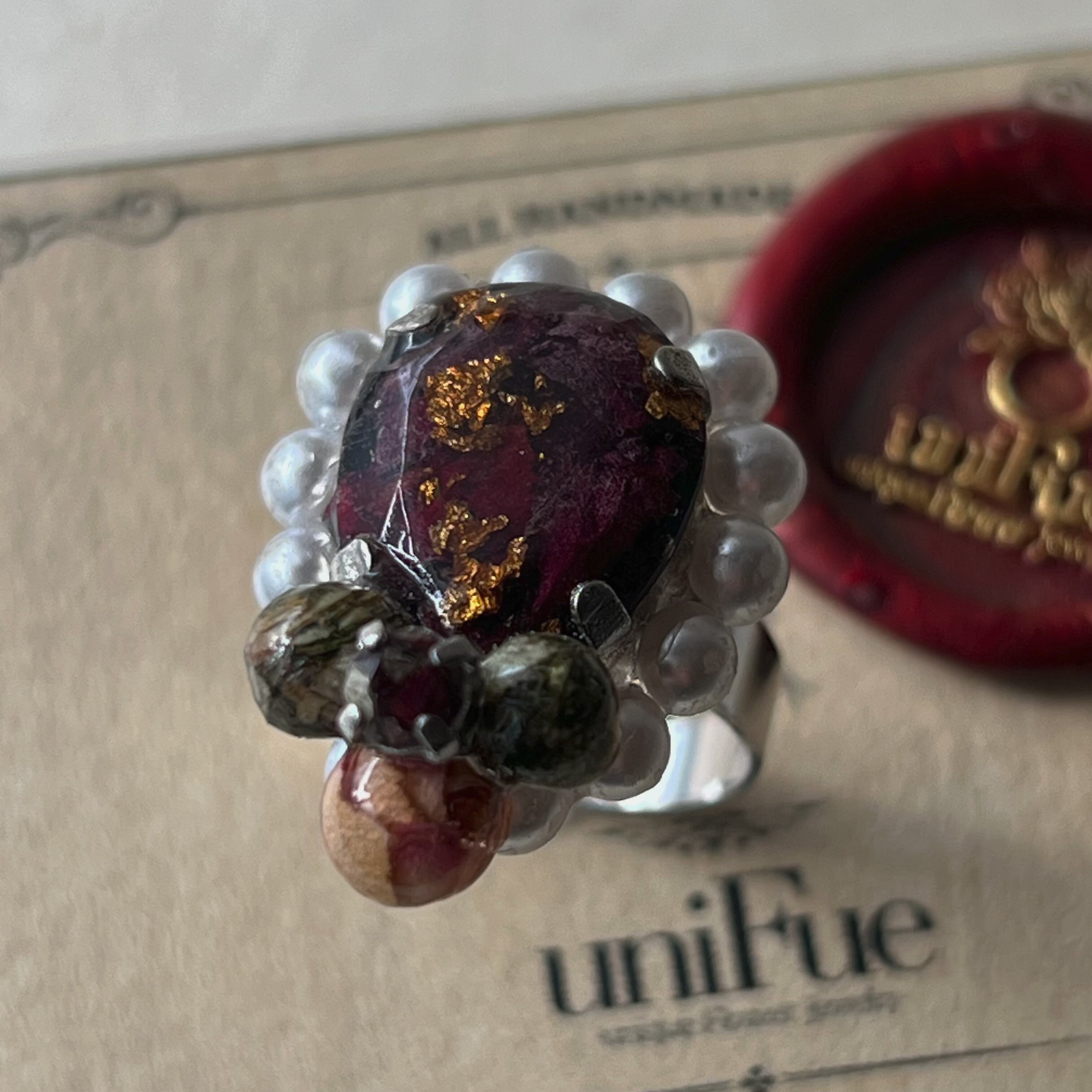 素材:ステンレス(リング部分) 樹脂 ドライフラワー レジンパール 合金
