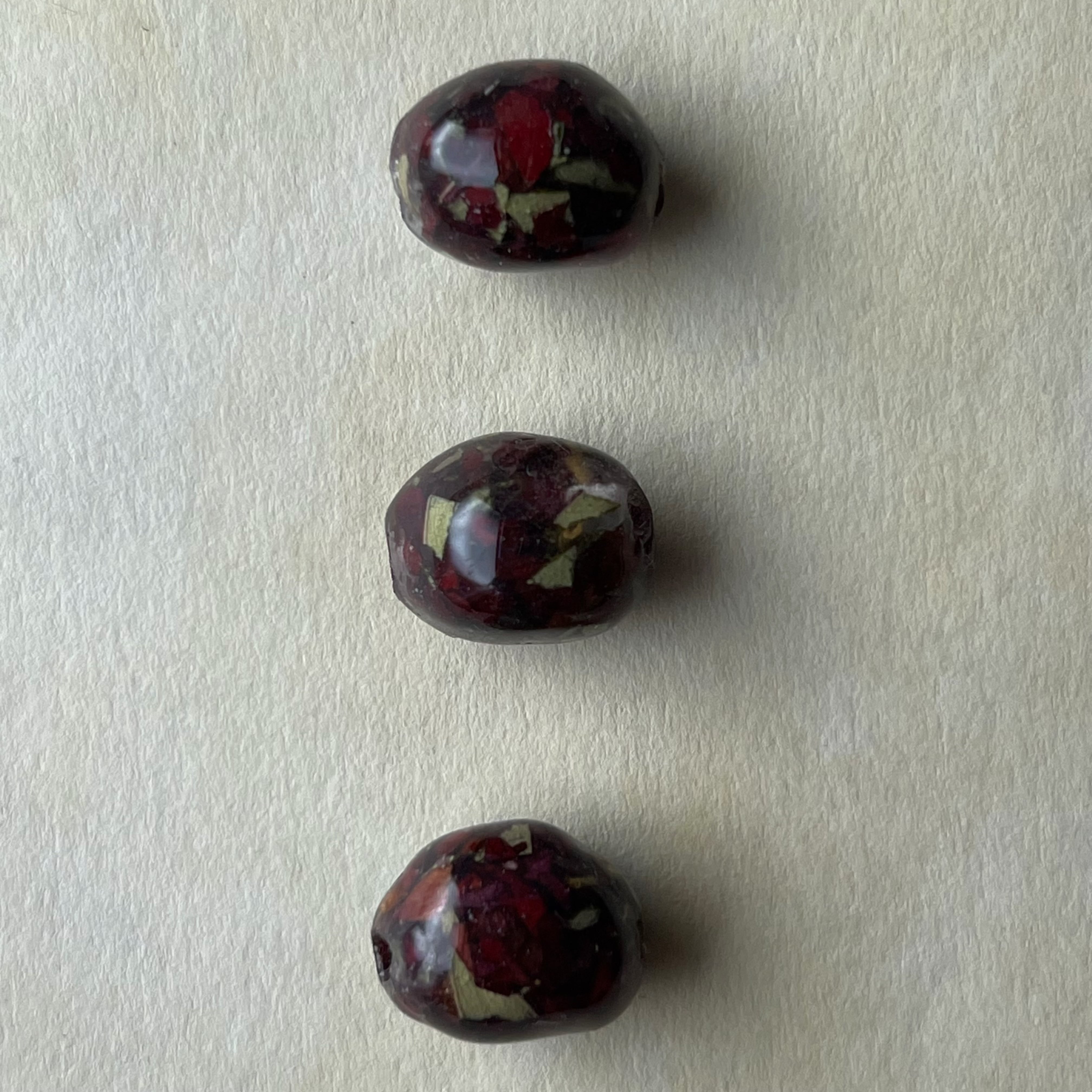 花のかけらが石の鉱脈のように重なり合い、ひとつひとつ異なる模様を描きます。