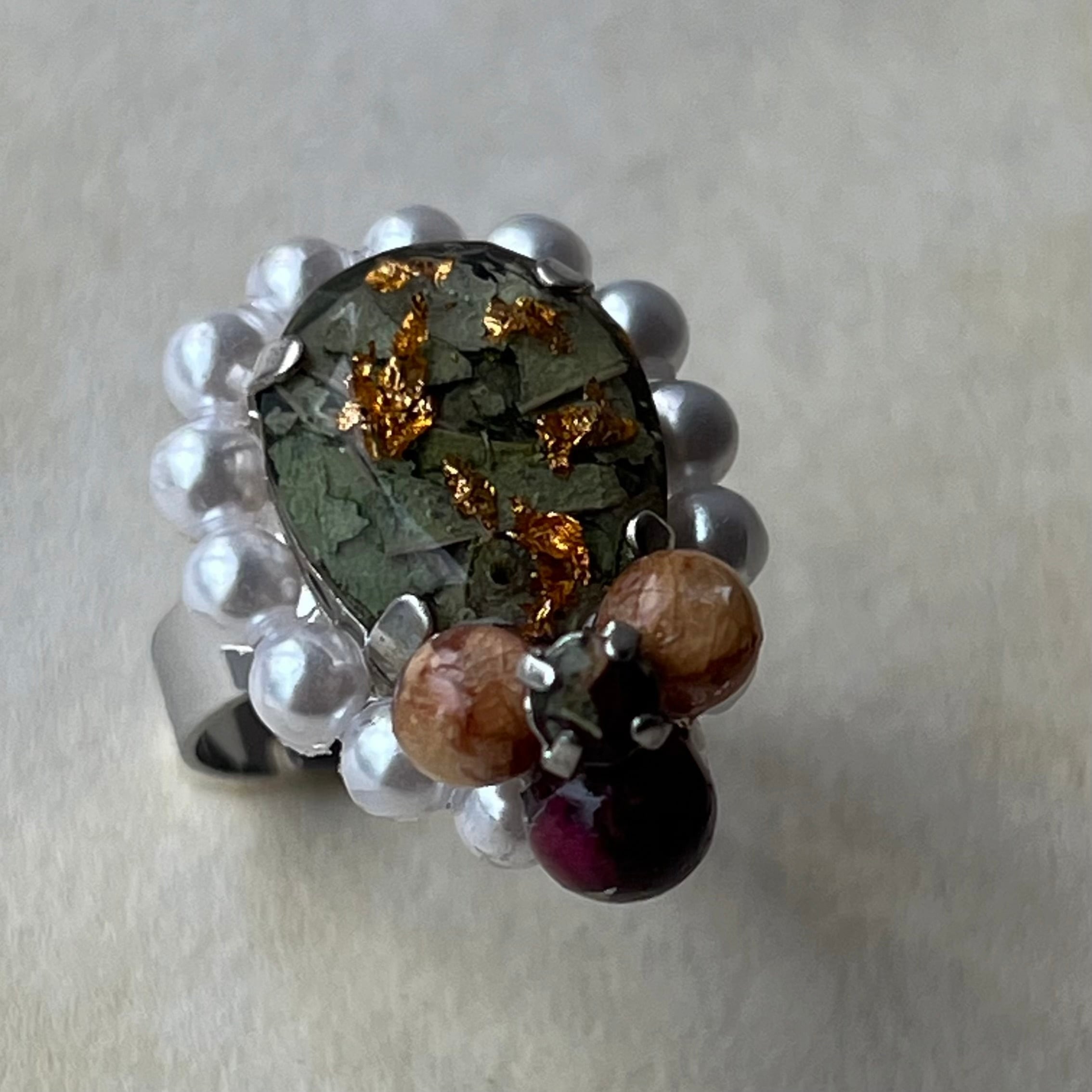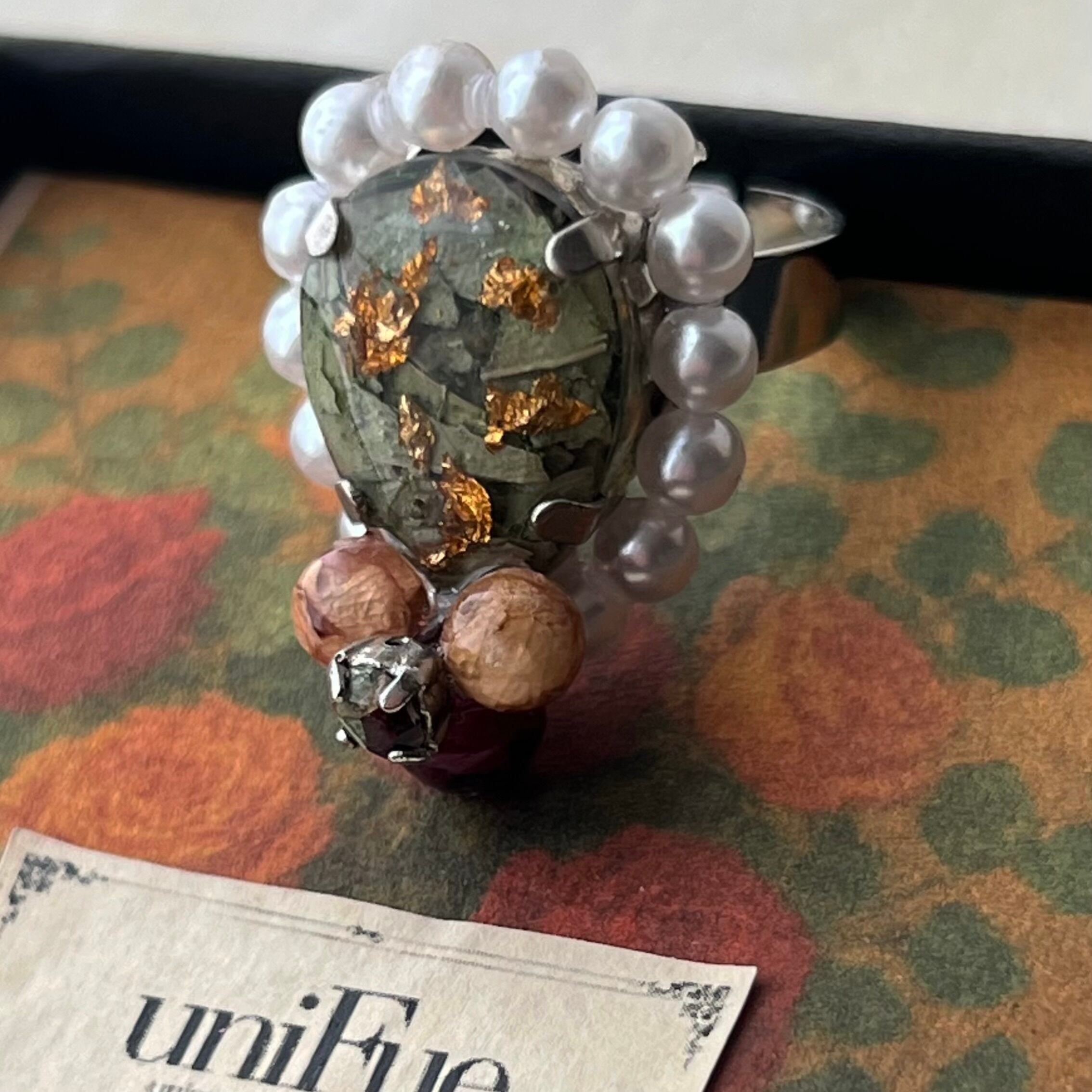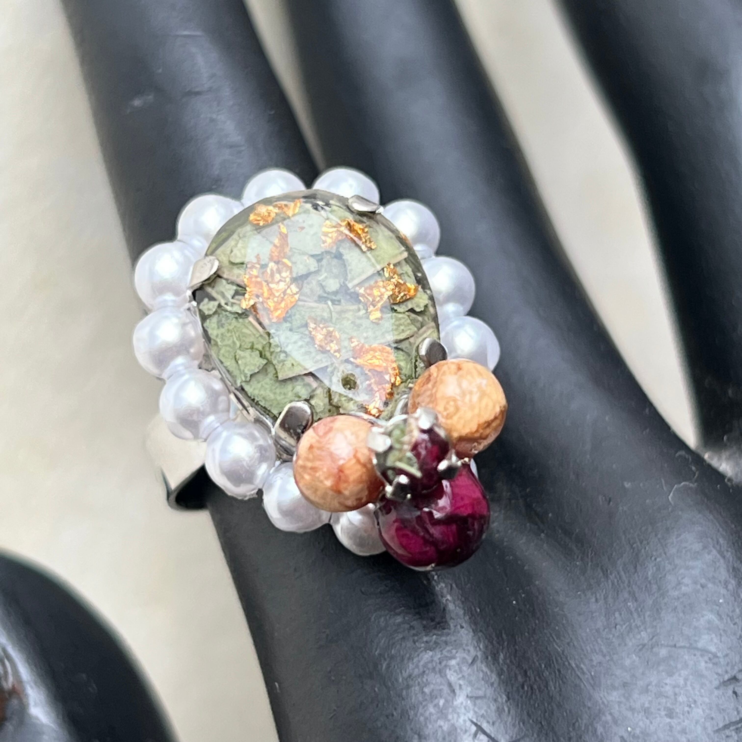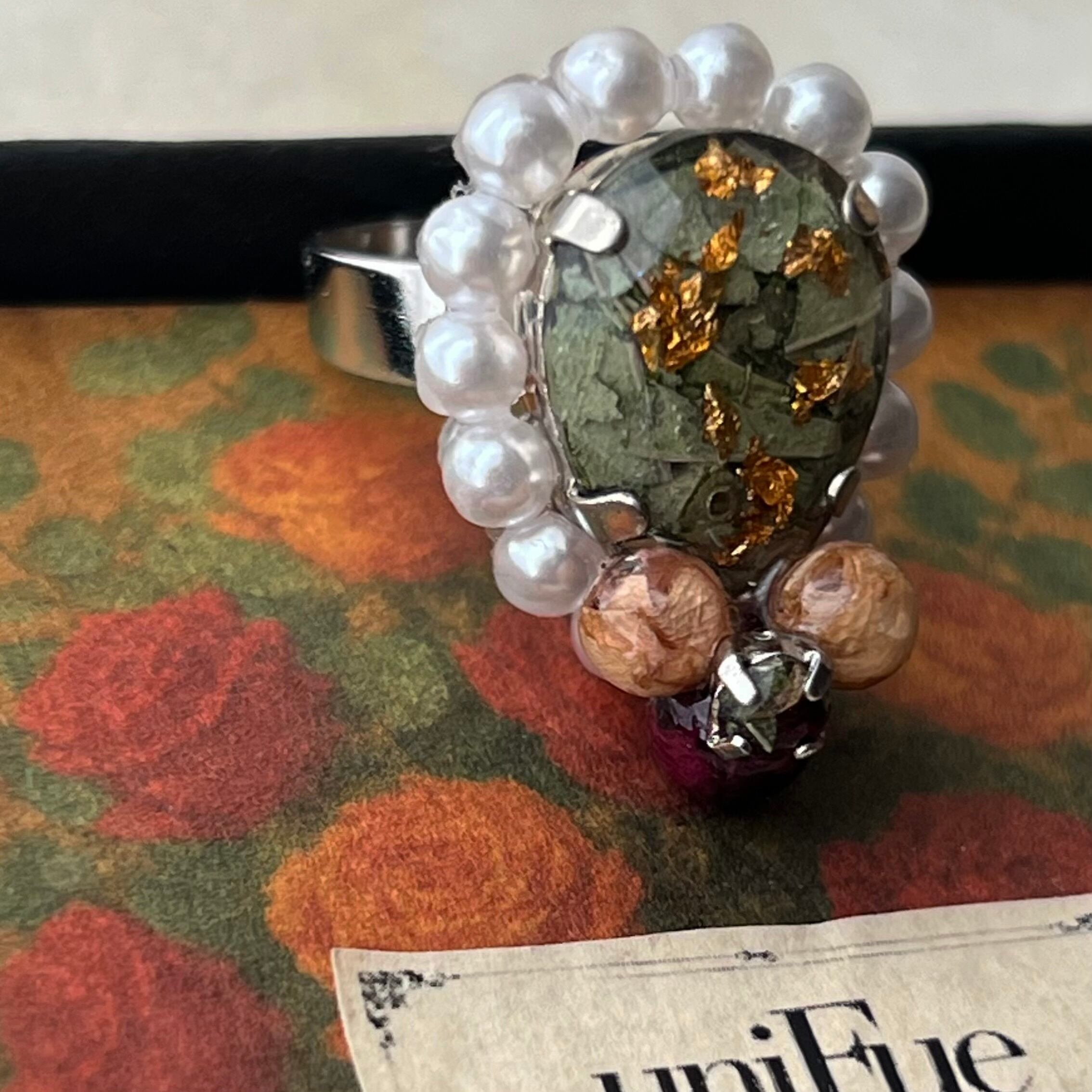 素材:ステンレス(リング部分) 樹脂 ドライフラワー レジンパール 合金