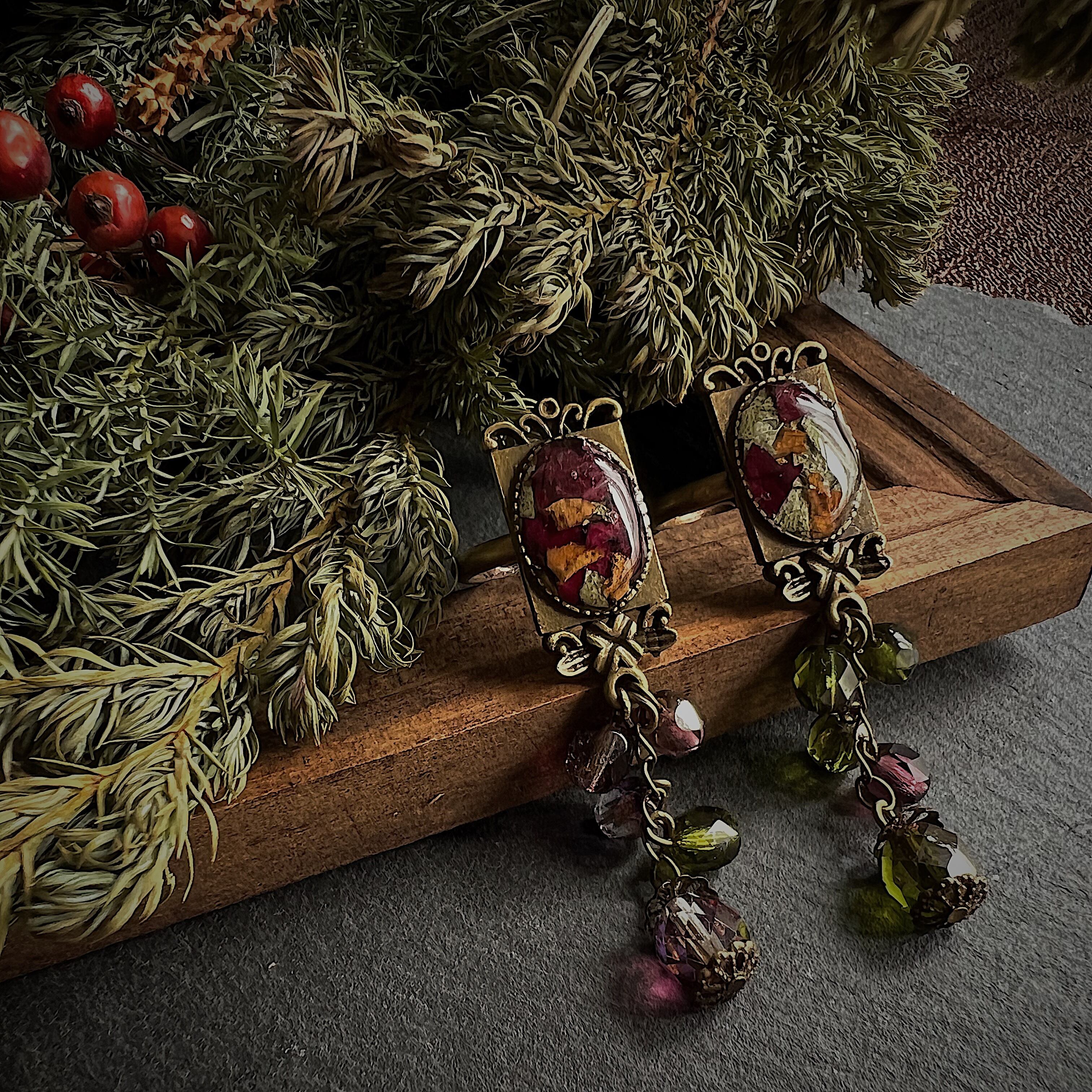 素材:真鍮 合金(金属アレルギー防止コーティング済) チェコガラス 樹脂 ドライフラワー