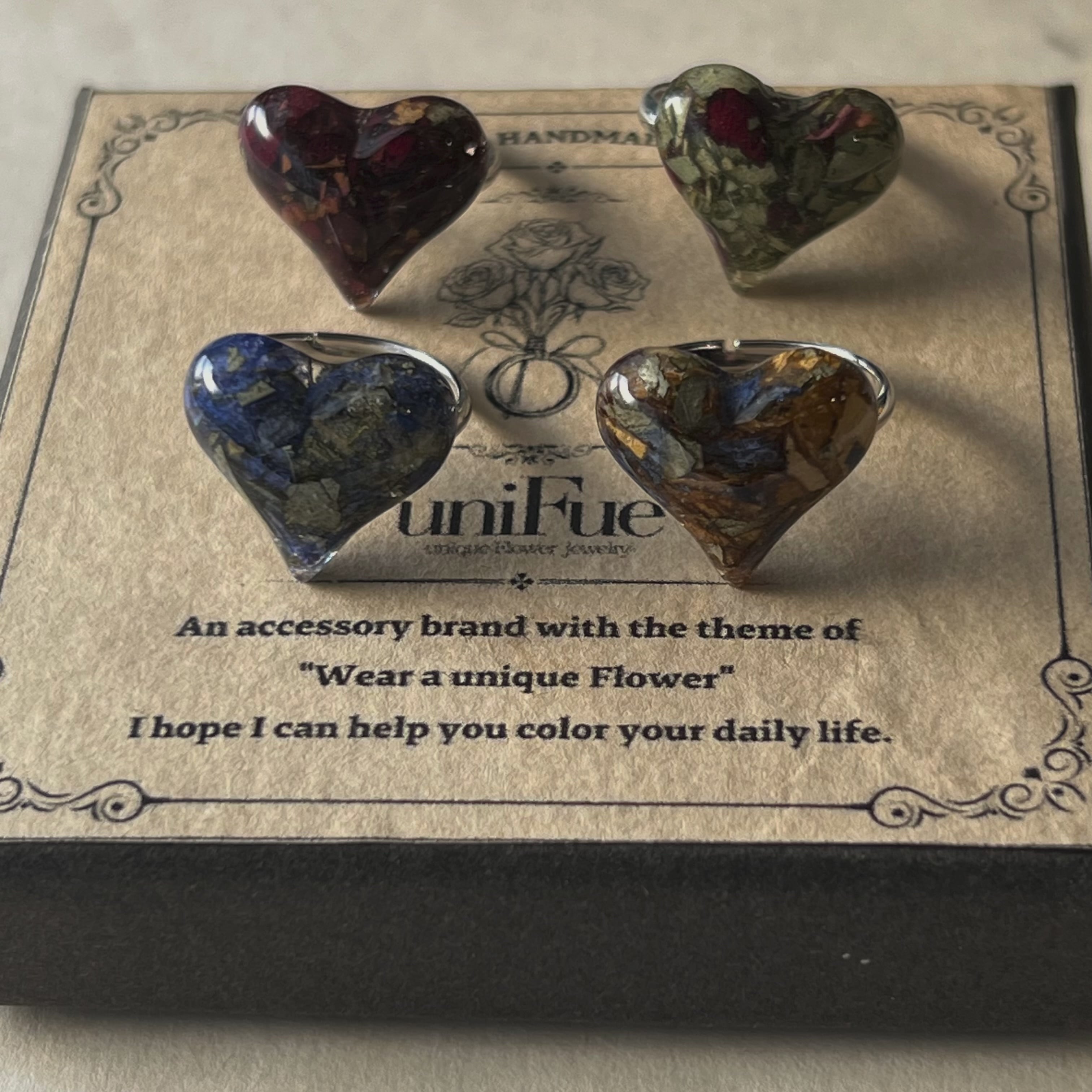 4color展開の花のハートのリング
